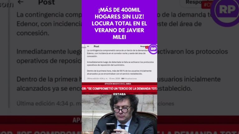 Video ¡MÁS DE 400MIL HOGARES SIN LUZ! LOCURA TOTAL EN EL VERANO DE JAVIER MILEI 4 semanas hace Leer más